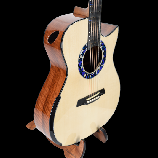 Made from my personal reserve of finest tonewoods, the Blue Label guitars are made with an intention of creating very unique pieces as if each are custom ordered — pieces that will be treasured from generation to generation.