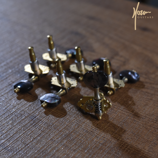 Gotoh Gold Slotted Headstock with Black Mother of Pearl Knobs
