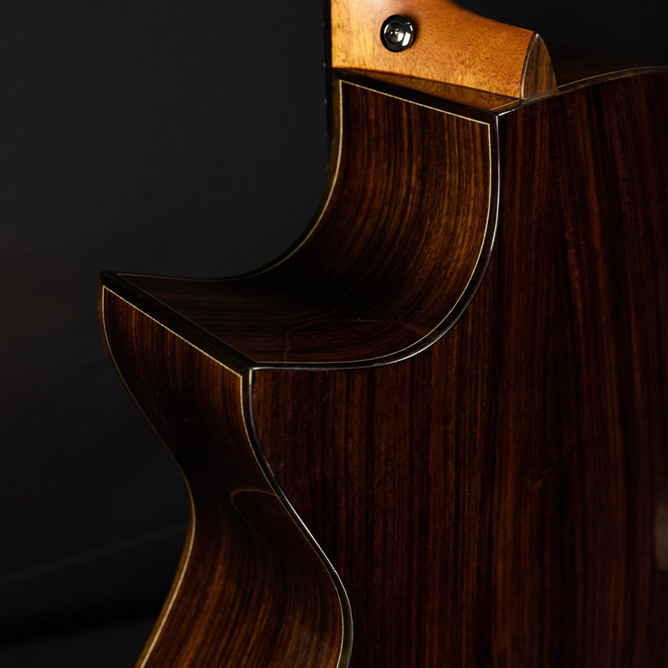 Tapered Body Medium Jumbo Baritone with Florentine Cutaway, Soundport, and Beveled Armrest, solid Sitka Spruce top with solid Indian Rosewood back & sides, Carbon Fiber Reinforced Mahogany neck, Ebony bridge & fingerboard.